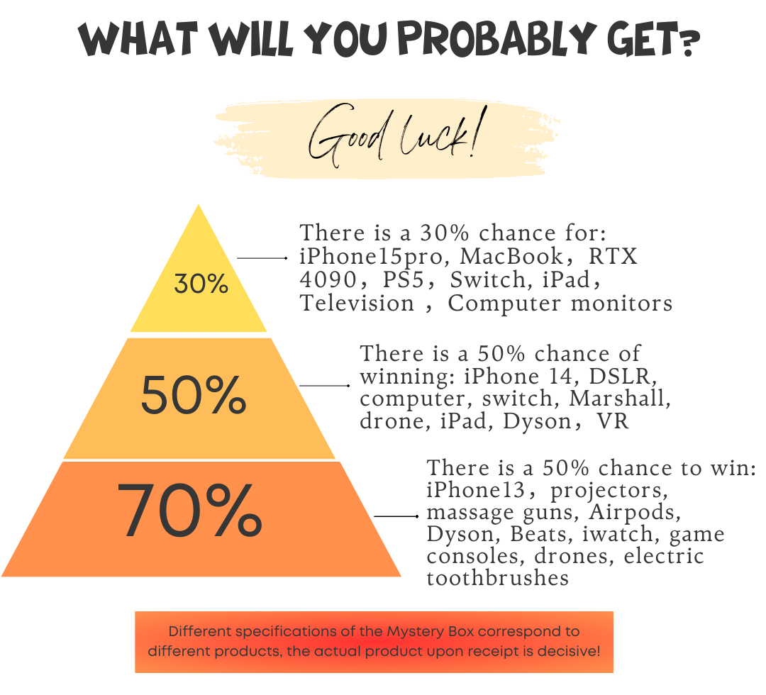 📦 The treasure chest contains: large electronics, household appliances, large toys, outdoor products and all kinds of smart electronic devices, super surprise for you to reveal!