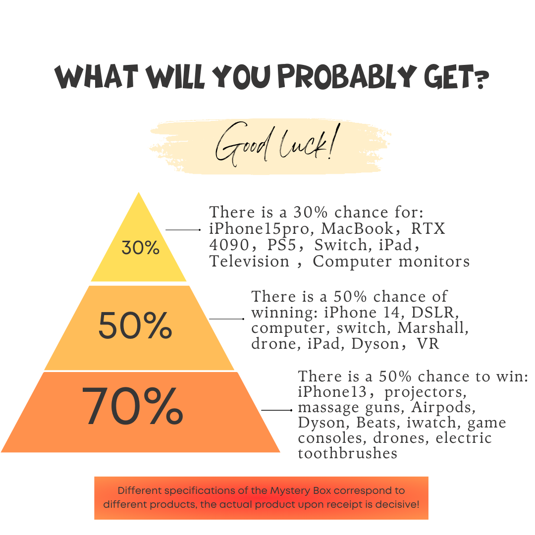 Note:The mystery box contains large electronic products, household appliances, large toys, outdoor equipment and various smart electronic devices